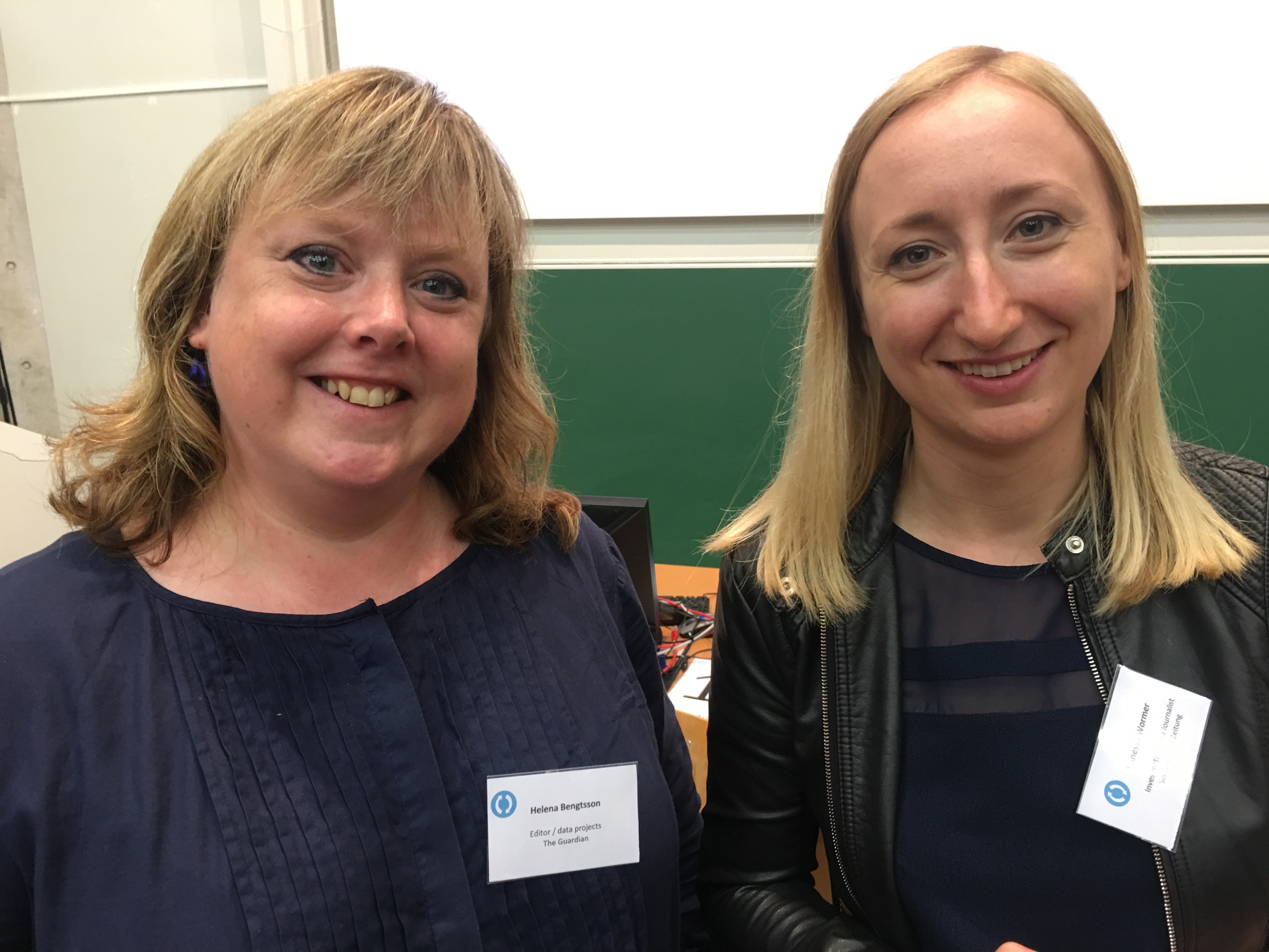 Helena Bengtsson fra The Guardian og Andrew W. Lehren fra The New York Times deler på å formidle kunnskap i databasebygging.