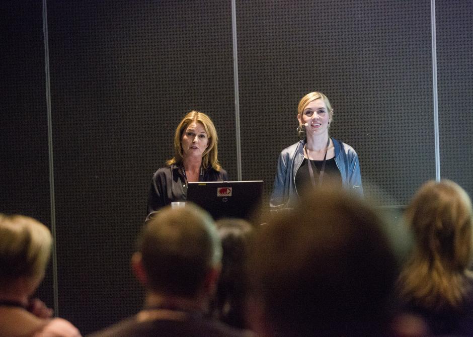 Marit Evertsen Grimstad og Elisabet Høye fra «FBI redder høna» forteller om hvordan de laget serien. Foto: Adrian Nielsen