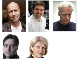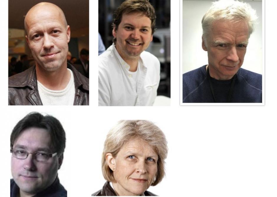 LÆRERNE: Øverst f.v. Per Arne Kalbakk, NRK, Anders Sooth Knutsen og Svein Kjølberg, VG. Nede f.v. Arve Bartnes, NRK og Siri Gedde-Dahl, Dagbladet.
