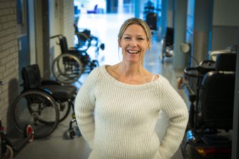 FLYTTER RUNDT: Helene Sandvig har flyttet inn på elleve instutusjoner, og her er hun under arbeid med et av programmene. Foto: Anders Leines/NRK