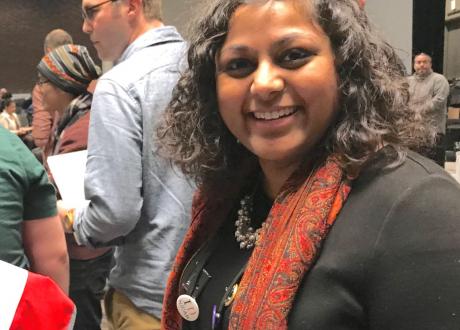 Her står ProPublicas Sandhya Kambhampati klar til å lede «Lightning Talks» - den mest populære og mest besøkte sesjonen på NICAR – den amerikanske konferansen for undersøkende datajournalistikk.